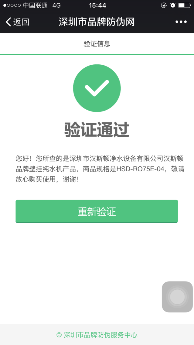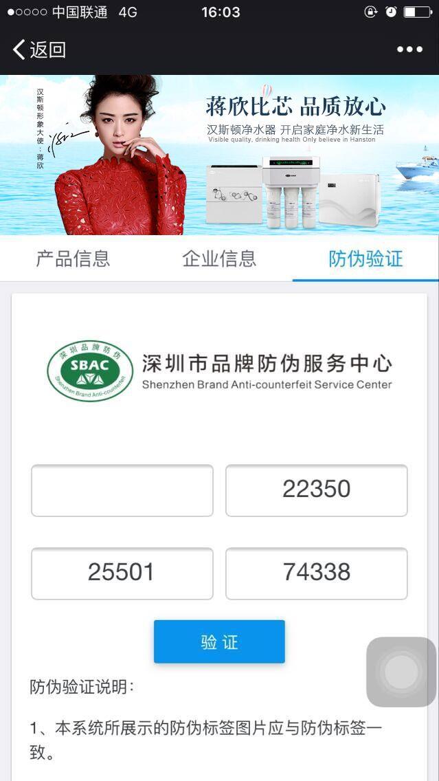 操作步驟1:掃描漢斯頓防偽標簽上的二維碼(如左下圖),進入防偽系統,點擊防偽驗證欄目。