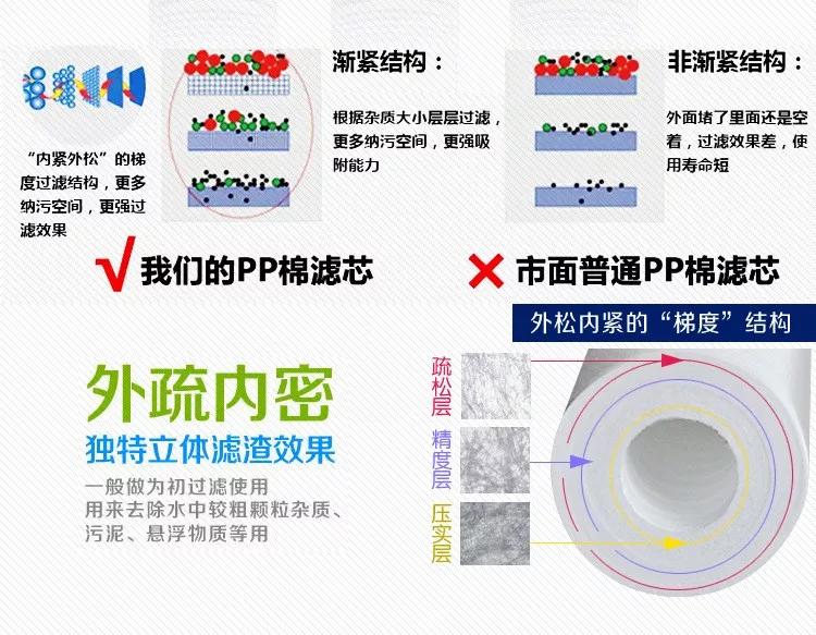 一般你收到濾芯,首先就捏下,看其硬度,一般越重的PP棉硬度越高,捏起來軟趴趴的PP棉就是很輕,就沒有那種捏起來比較硬的好。因?yàn)樵谕瑯拥乃|(zhì)情況下,越軟的PP棉用的時(shí)間越短,更換周期越短。