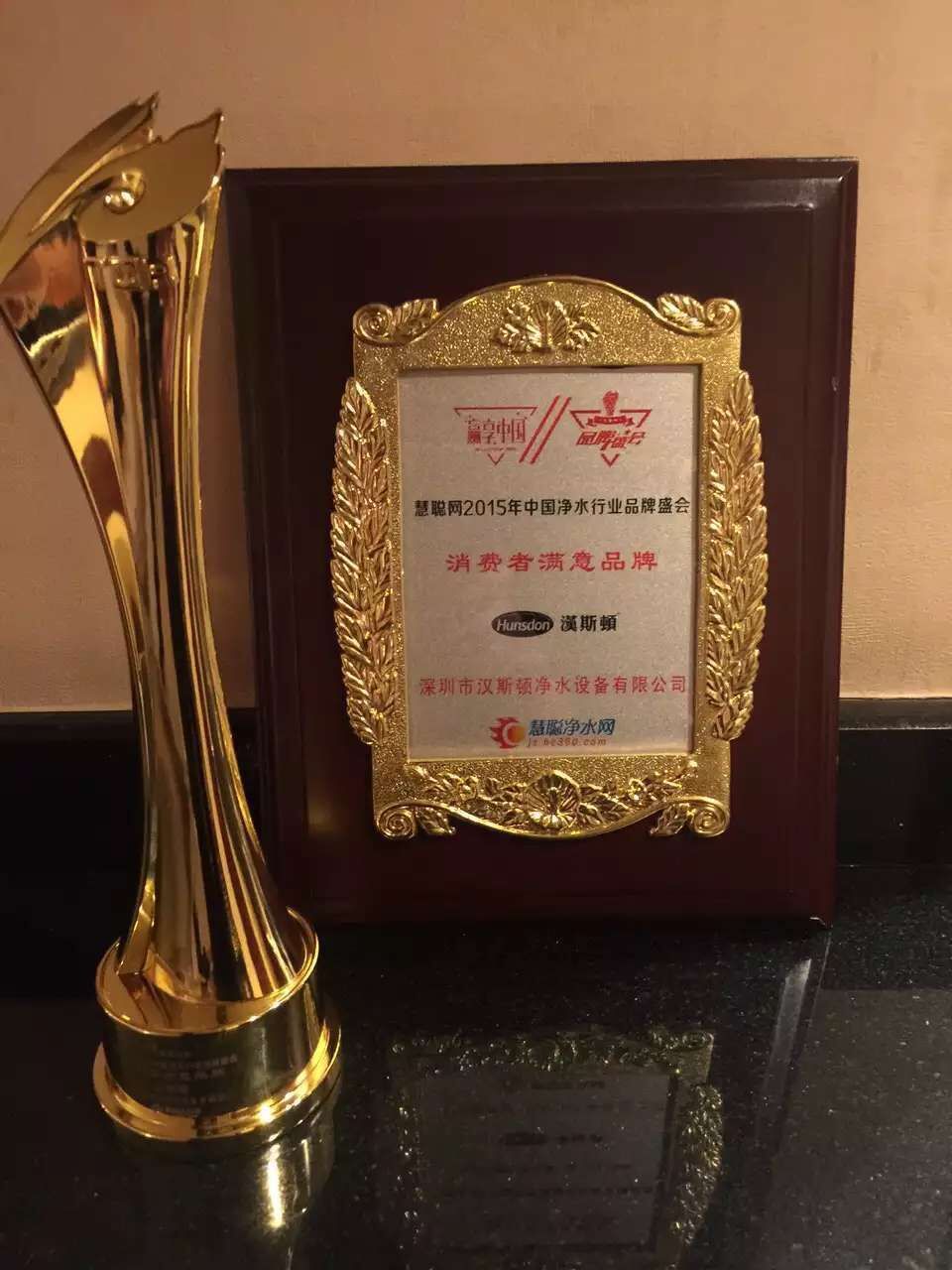 2015年11月18日,由慧聰凈水網主辦、浩澤凈水獨家冠名的“贏享中國”慧聰網2015年中國凈水行業互聯網大會暨品牌盛會頒獎盛典在北京釣魚臺國賓館舉行。漢斯頓在此次盛會中脫穎而出,一舉拿下了消費者滿意品牌獎。這已經是漢斯頓接連三次榮獲該項獎項,成為備受關注的凈水器品牌。在國內成本上千的品牌中,漢斯頓以產品質量優秀、生產技術創新、品牌影響力大而榮獲該獎項,同時也證明了漢斯頓品牌再一次得到消費者的肯定。