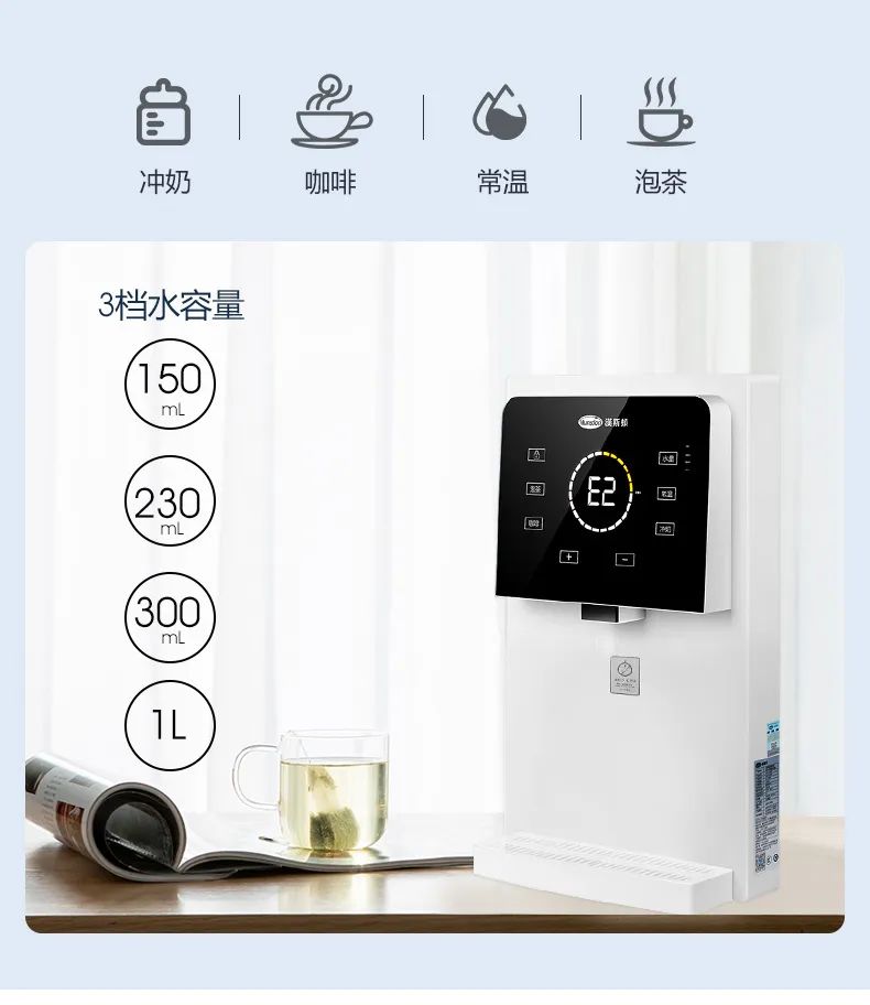 LED屏,一鍵觸控,定制水量調(diào)節(jié)+常溫+泡奶選擇,具有流量記憶,不用頻繁設(shè)置,自動記住你要的選擇,安全可靠;多檔水溫精準(zhǔn)可調(diào),秒速即熱,每一杯都是新鮮水,用不同的溫度匹配不同的飲品。