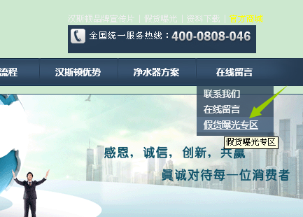 一:打開百度搜索---輸入漢斯頓凈水器官網---點開m.ganrengushi.com。---點開在線留言下拉框假貨曝光專區,就可以看到漢斯頓授權網店的地址和店鋪名稱了??梢灾苯狱c開鏈接或者在電商平臺搜索店鋪名稱。