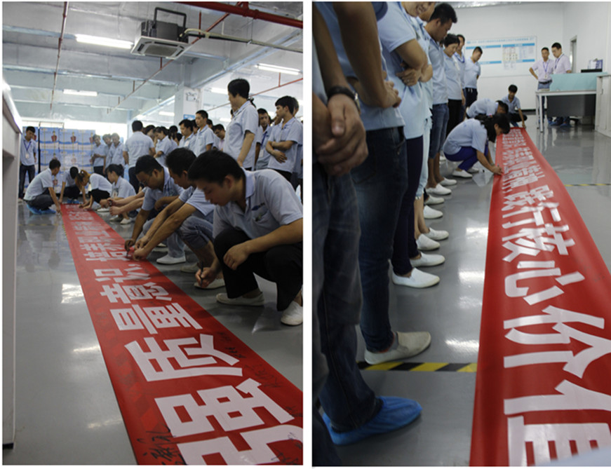 為大力營造“質量月”的濃厚氛圍開展了全體員工質量知識普及及教育,號召全體員工在宣傳橫幅上簽字,讓質量目標深入人心,并開展了自我剖析通過質量廣泛的宣傳教育和深入討論,讓每一個員工從思想上真正認識到質量與企業、質量與市場、質量月成本、質量與員工的根本利益之間的關系,弘揚公司企業文化和質量文化。