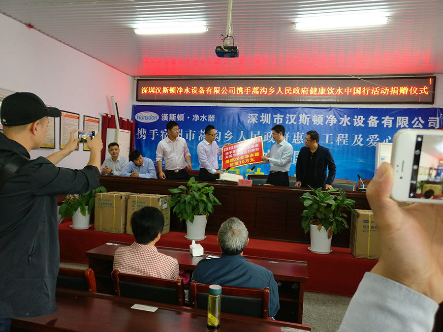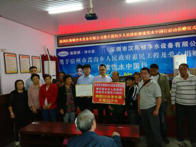2017年9月,漢斯頓凈水器攜手蒿溝鄉人民政府“健康飲水中國行”,除了向部分農村家庭無償捐贈凈水設備,改善其飲水條件之外,更重要的是通過此次活動喚起社會大眾對飲用水現狀的關注。