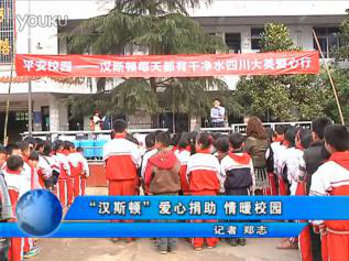2013年3月,漢斯頓進入四川。一共為大英縣隆盛鎮石門小學、隆盛鎮民主初中、大英特殊教育學校、象山鎮黃蓮小學、南充市蓬安鎮長遠村小學捐贈價值五十余萬元的凈水設備、文具、風扇、雨衣等。