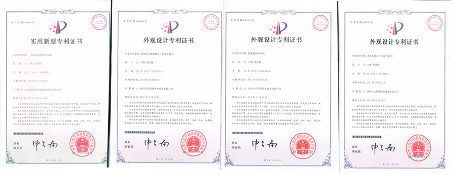 在2017年歲末之季,漢斯頓再次榮獲4項(xiàng)國家專利證書,分別是:《一種反滲透直飲凈水器》實(shí)用新型專利、《能量超濾凈水機(jī)》、《凈水機(jī)濾芯(快速卡旋式)》、《反滲透凈水機(jī)濾芯(快速卡旋式)》外觀設(shè)計(jì)專利。