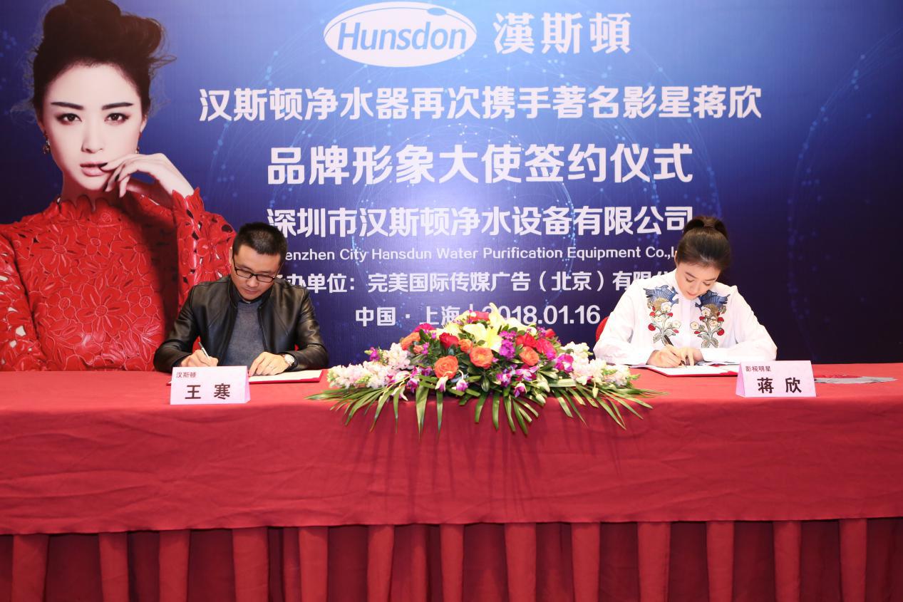 2018年1月16日,漢斯頓凈水器再次攜手著名影星蔣欣為品牌形象大使的簽約儀式在上海舉行。演技日益嫻熟,人品形象健康的蔣欣現(xiàn)已是在中國擁有巨大影響力的一線演藝明星之一,曾經(jīng)《甄嬛傳》中美艷尊貴的華妃,如今《歡樂頌》中自立自強(qiáng)的樊勝美,《華胥引之絕愛之城》中凄美慘烈的宋凝,綜藝節(jié)目《我們來了》中的搞笑擔(dān)當(dāng)?shù)纫幌盗薪巧堇[讓我們更深入了解她。作為影視業(yè)的明星,蔣欣一直以來的美好公眾形象,正契合了漢斯頓凈水器專注提升品質(zhì)、在客戶和消費(fèi)者中樹立的良好口碑。