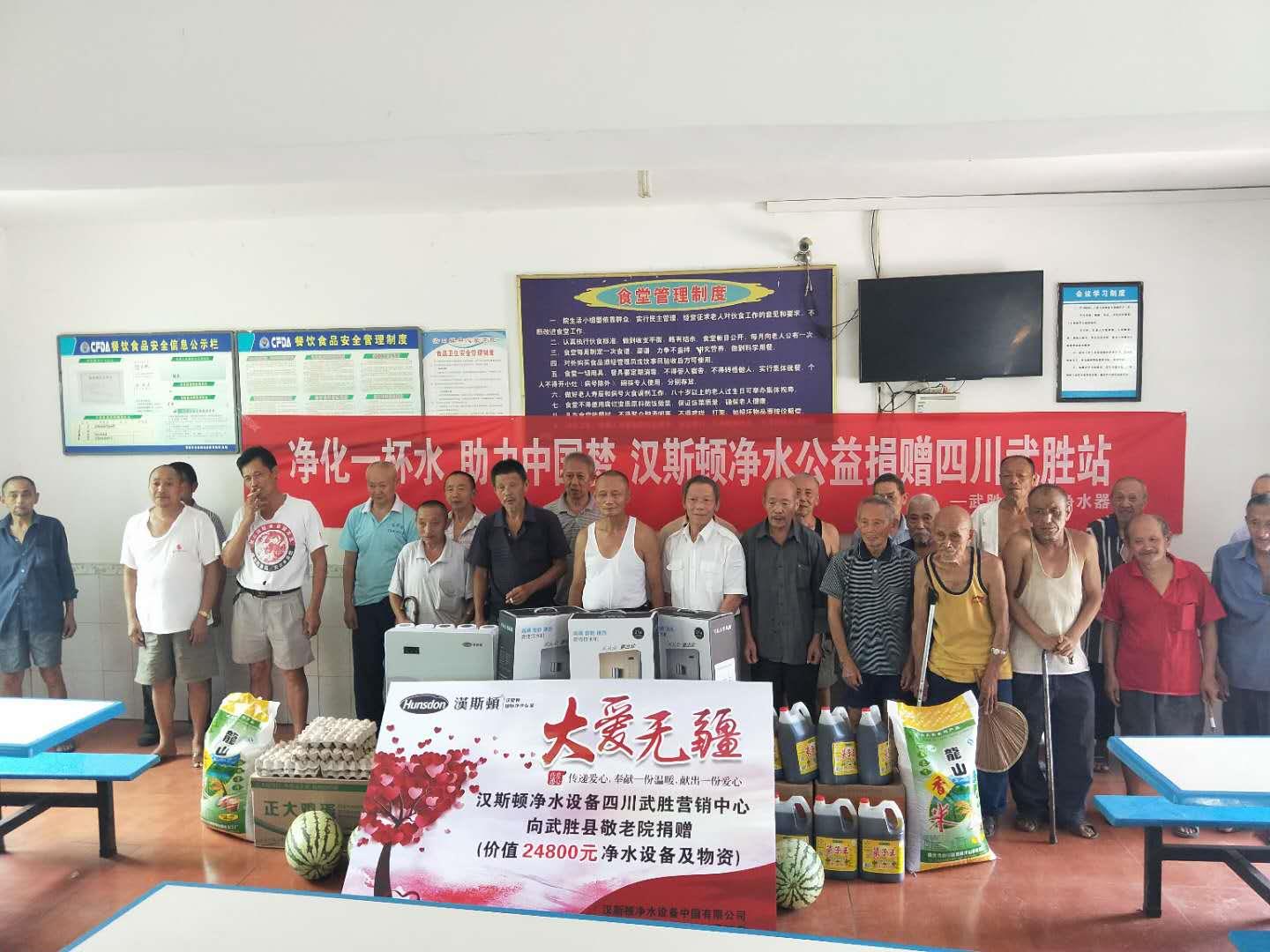 漢斯頓四川武勝代理商向敬老院捐贈價值24800元凈水設備及大米、食用油、雞蛋、水果等物質。