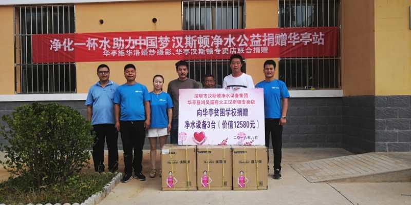 漢斯頓甘肅平涼華亭代理商向華亭貧困學校捐贈價值12580元的凈水設備,助力在校師生飲好水。