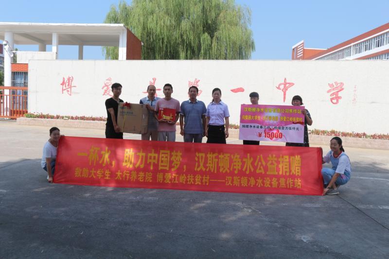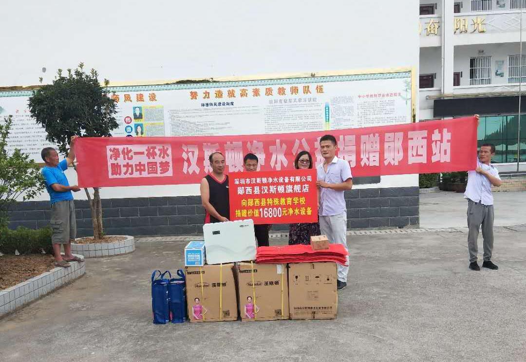 漢斯頓湖北十堰鄖西縣代理商向該縣特殊教育學校捐贈價值16800元的凈水設備,幫助全校師生安全飲水,飲用干凈水!