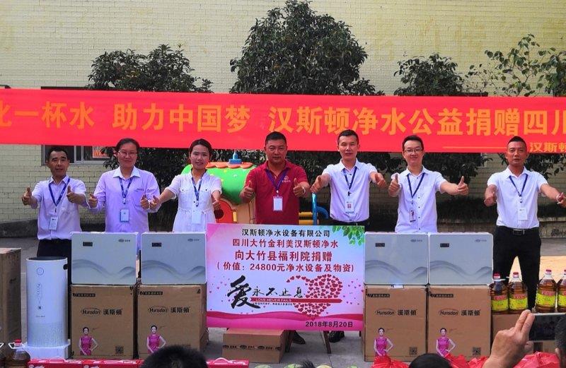 漢斯頓四川大竹代理商向大竹縣福利院捐贈價值24800元凈水設備以及空氣凈化器,牛奶,大米、食用油、水果等物質。