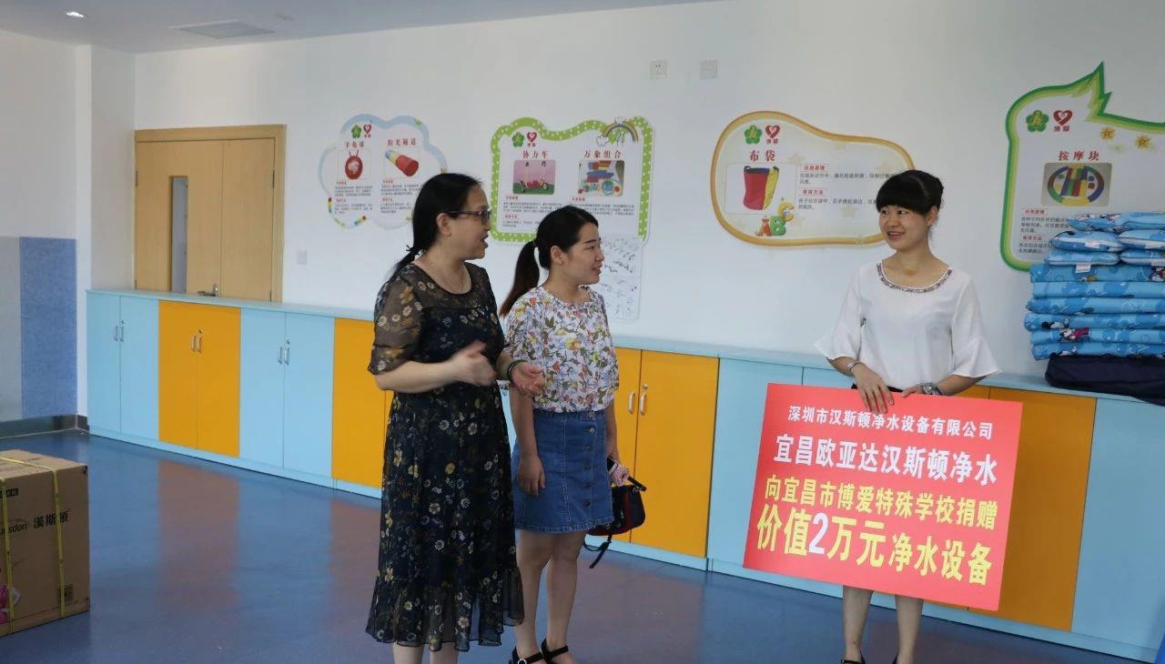 漢斯頓湖北宜昌市代理商向宜昌博愛特殊學校捐贈價值20000元的凈水設備,提高學校師生飲水質量,讓孩子們飲水無憂。