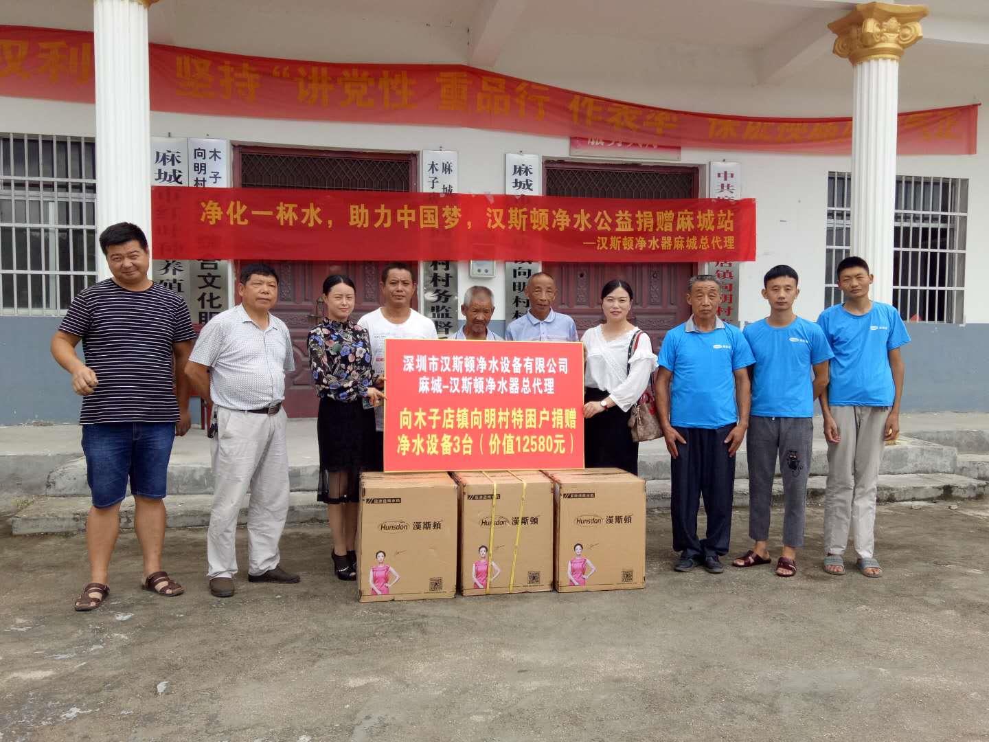 漢斯頓湖北黃岡麻城代理商向木子店鎮向明村特困戶捐贈價值12580元的凈水器設備,以幫助貧困戶改善飲水質量,提高生活水平,不斷增強貧困戶的獲得感和幸福感。