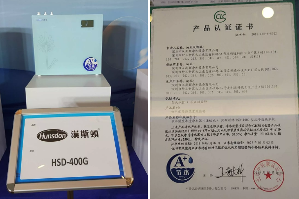 發(fā)布會(huì)上,深圳市漢斯頓凈水設(shè)備有限公司凈水器流速王(HSD-400G)獲得了A+節(jié)水認(rèn)證證書(shū)。