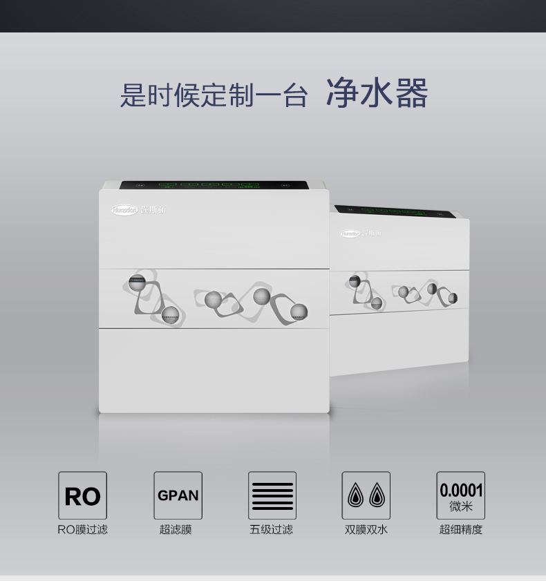 采用進口膜元件及先進的制膜工藝,產品性能和用途是行業領導者。有效的濾除水中細菌、病毒、有機物、無機物、殘留農藥、工業化工污染及水中的汞、砷、鎘、鉛、等重金屬離子和放射性物質等,產水水質符合《中華人民共和國生活飲用水水質處理器衛生安全與功能評價規范—一般反滲透水質處理器》要求。