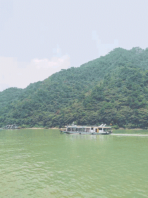 第一天中午,便安排游船午餐,在碼頭乘船游覽「北江小三峽」。這里風平浪靜、山巒青翠欲滴、江灣碧綠清澈,一派詩情畫意。