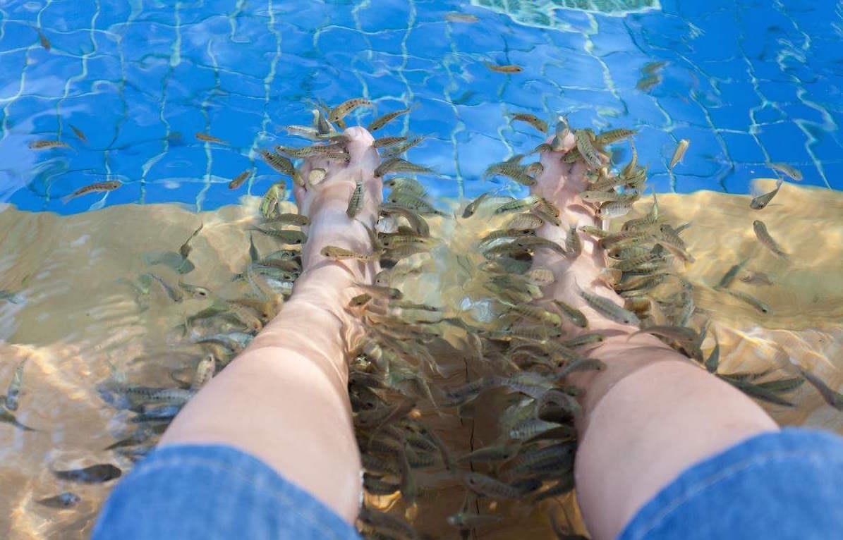 同時還設有特色魚療區,通過小魚啄食肌膚,達到按摩、緩解疲勞的作用。