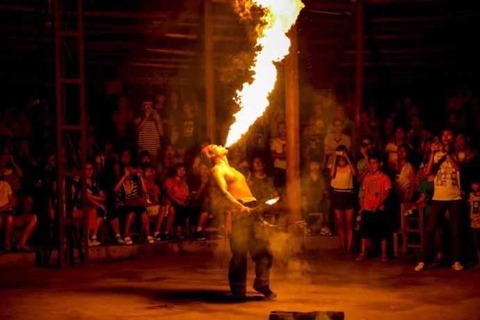 除了“娶妻”活動,還有瑤家阿貴(未成婚的小伙子)表演的踩鋼刀、火燒身以及噴火等精彩活動,讓大家親身感受瑤寨的萬種風情和瑤族同胞的款款熱情。