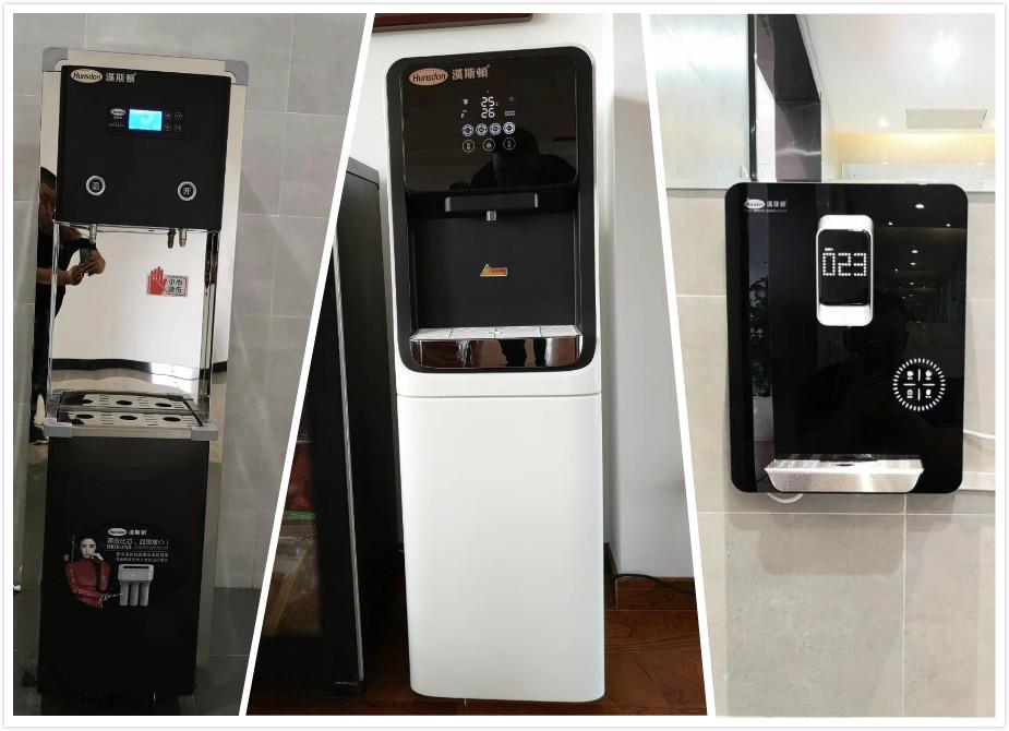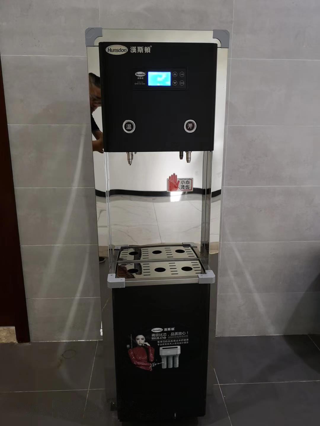 在獨立辦公室配置的是漢斯頓HSD-02-100G商用直飲凈水機,在走廊、大廳等職員人流量大的場所配置的是漢斯頓HSD-200G-KB120商用凈水機,并配備商用管線機。