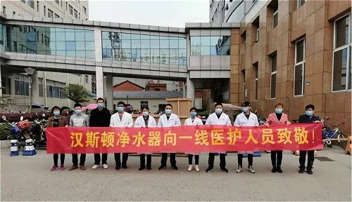 3月14日,漢斯頓火速馳援抗疫前線,向南陽醫(yī)專捐贈(zèng)飲水臺(tái)、凈水器及空氣凈化器。