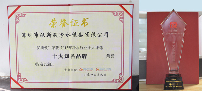 漢斯頓榮獲2013中國(guó)凈水十大知名品牌