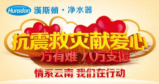 漢斯頓凈水器向云南省昭通市魯甸縣地震災區捐款價值百萬元現金及凈水器設備等援助云南震災居民。是災情發生后較先做出反應、幫助災區救援與重建,目前深圳捐贈數額較大的企業。